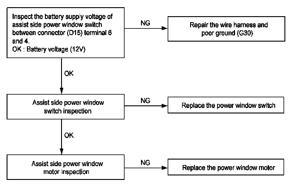 Assist side window does not operate.