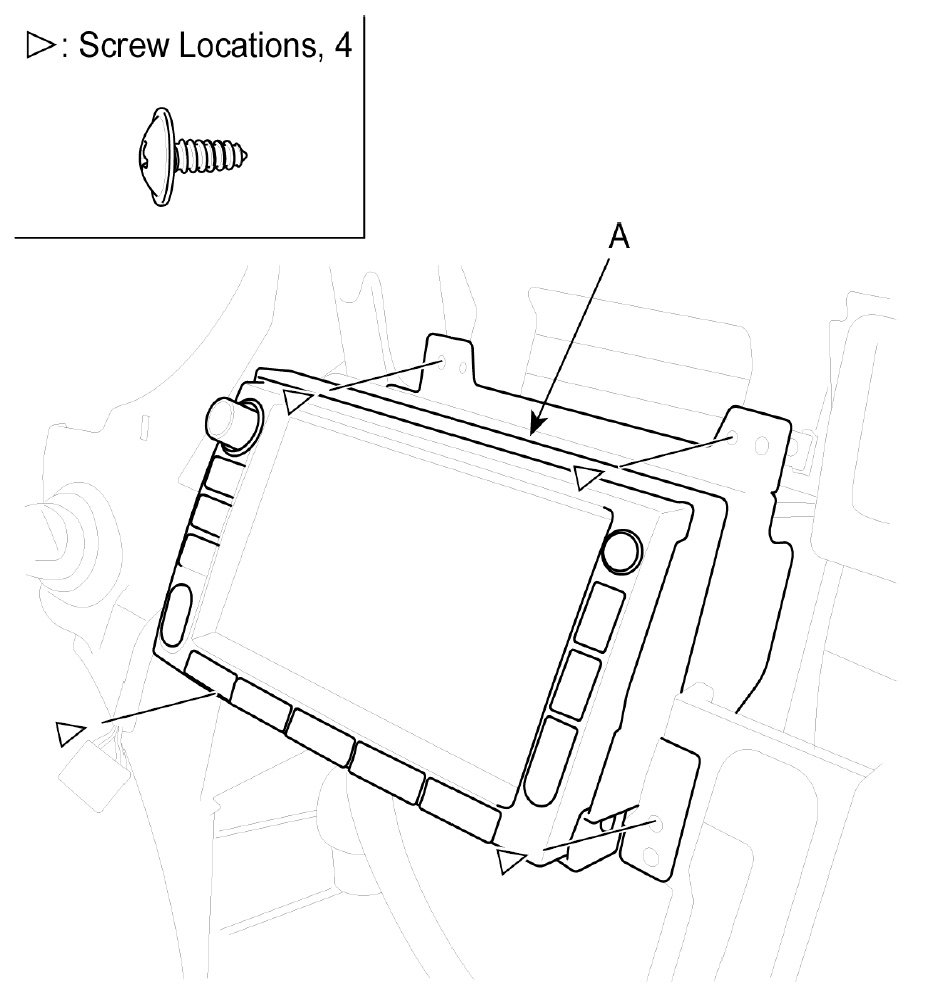 3. Disconnect the audio connector and antenna cable, then remove the audio assembly (A).