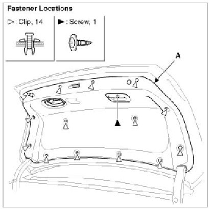 TRUNK LID TRIM REPLACEMENT1. Detach the clips, then remove the trunk trim (A).
