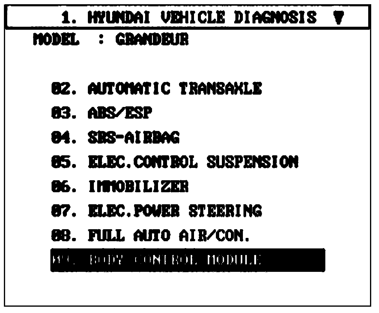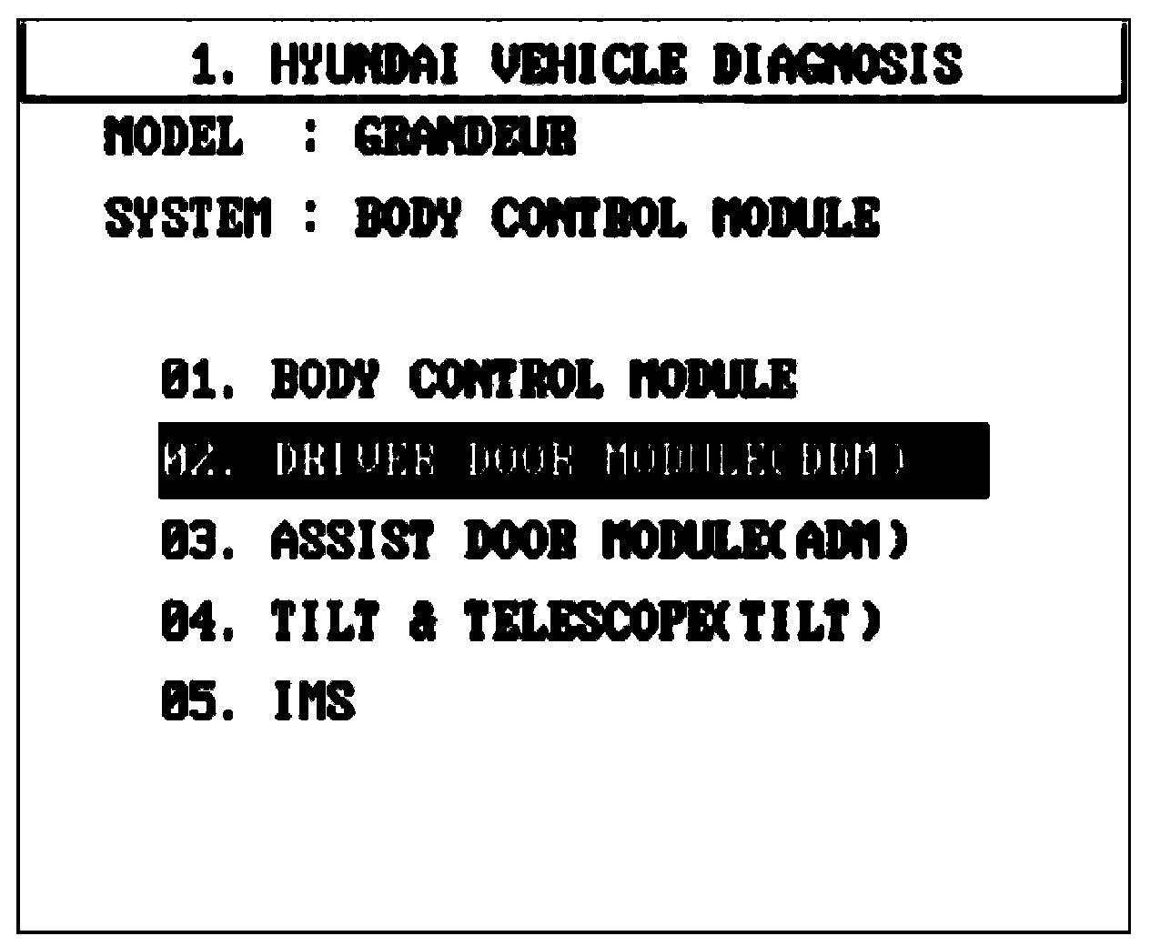4. Select model and BCM menu.