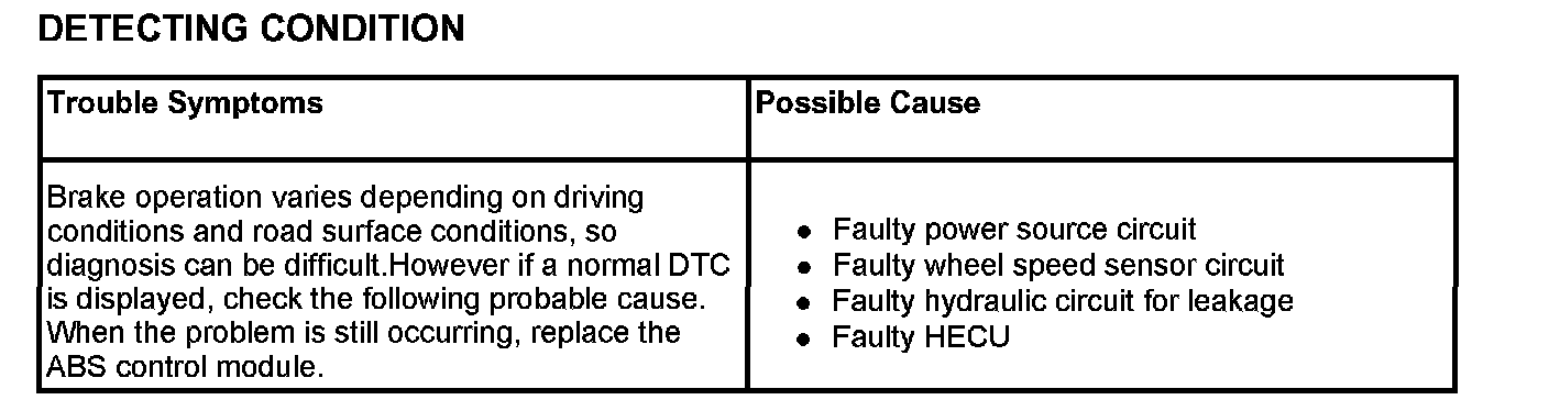 ABS Does Not OperateDETECTING CONDITION: