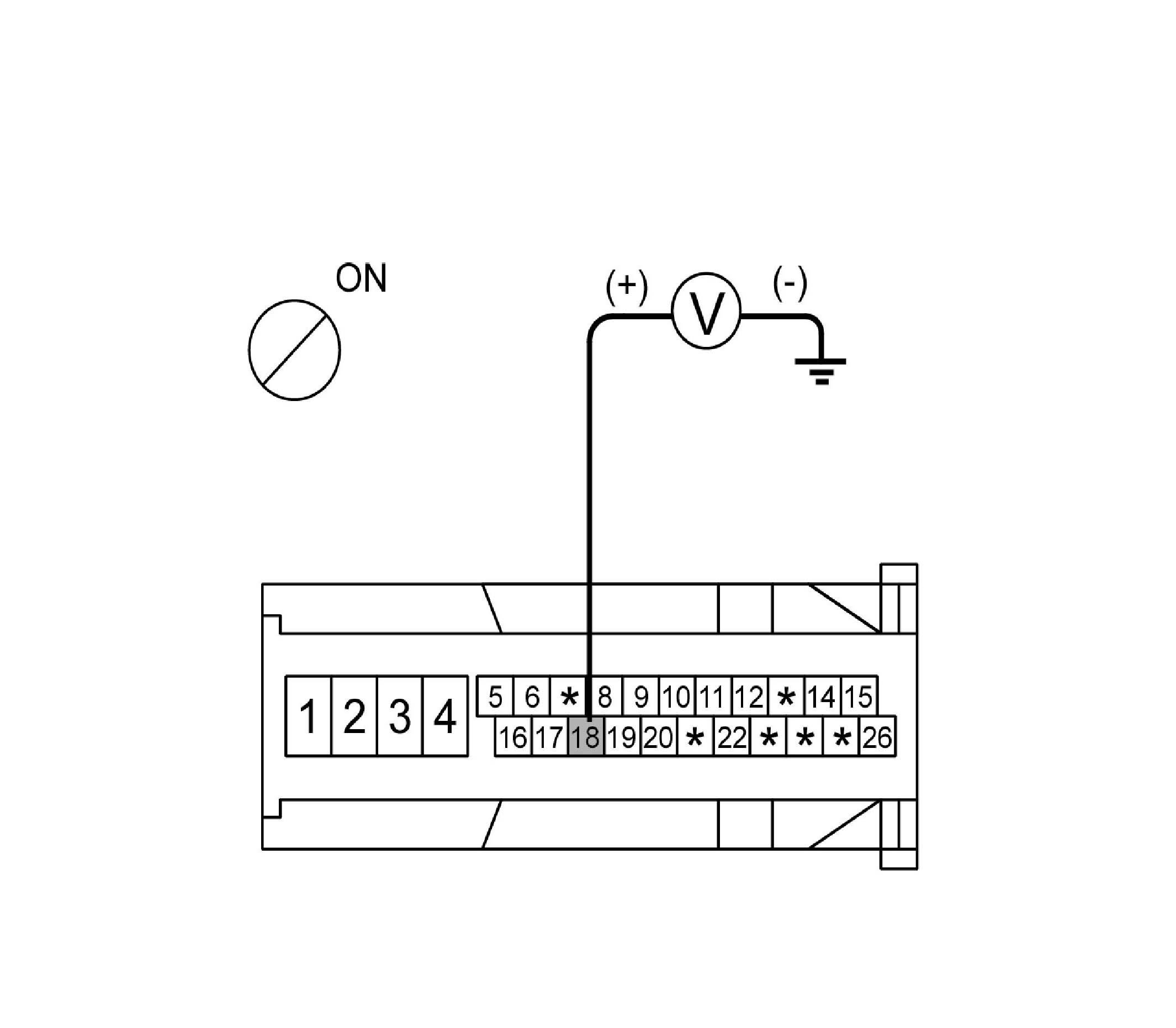 2. Turn the ignition switch ON, measure the voltage between terminal 18 of the ABS control module harness side connector and body ground.