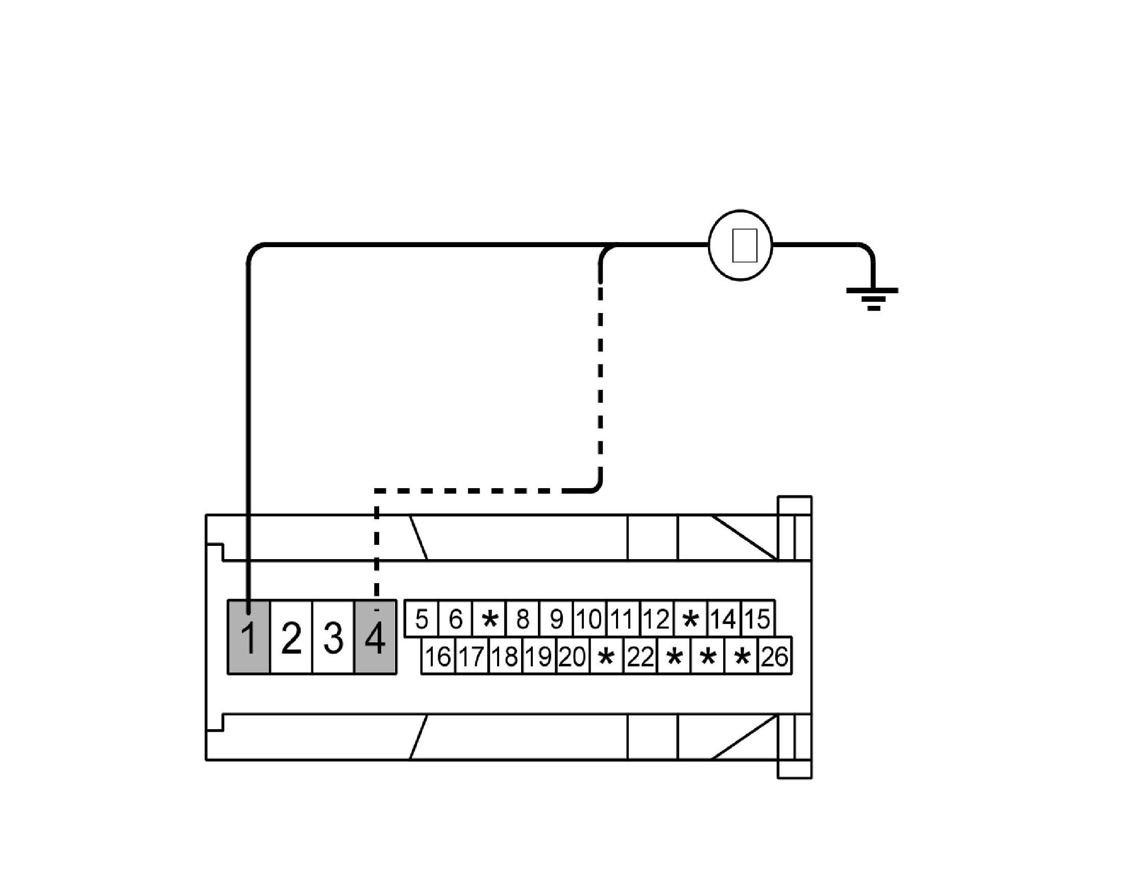 2. Check for continuity between terminals 1, 4 of the ABS control module harness side connector and ground point. Is there continuity?