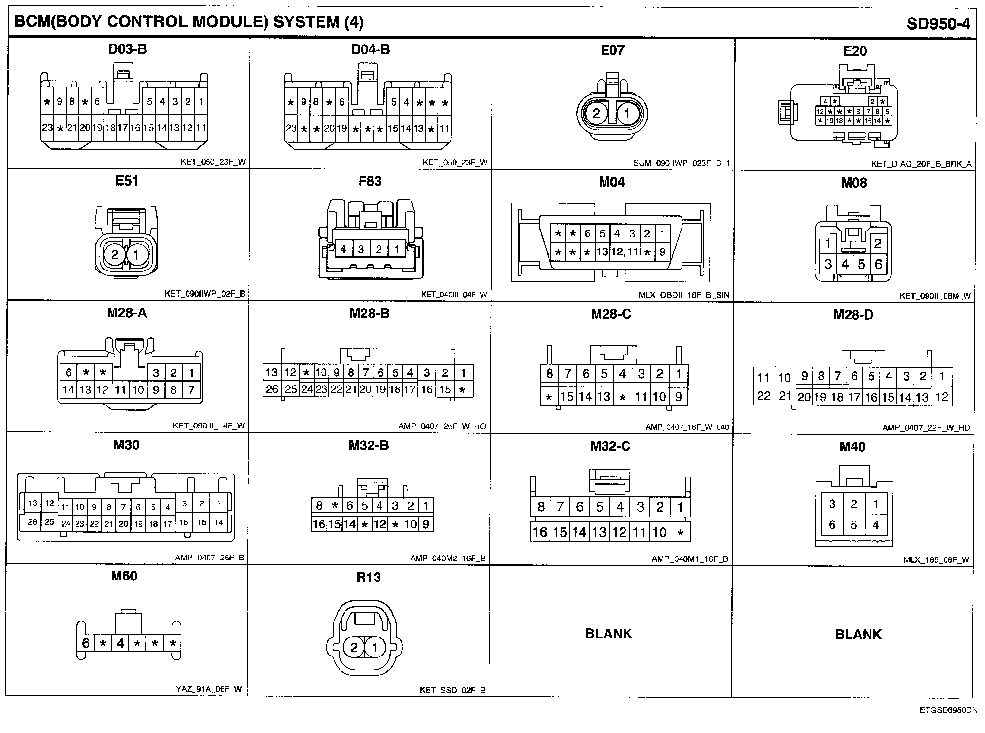 BCM (Body Control Module) System Connector Pin Outs: