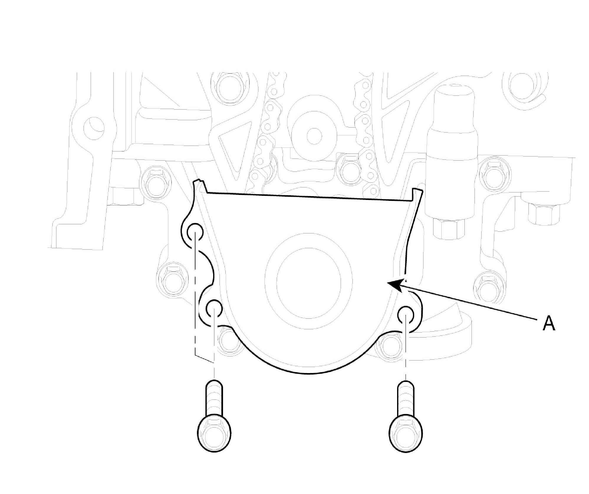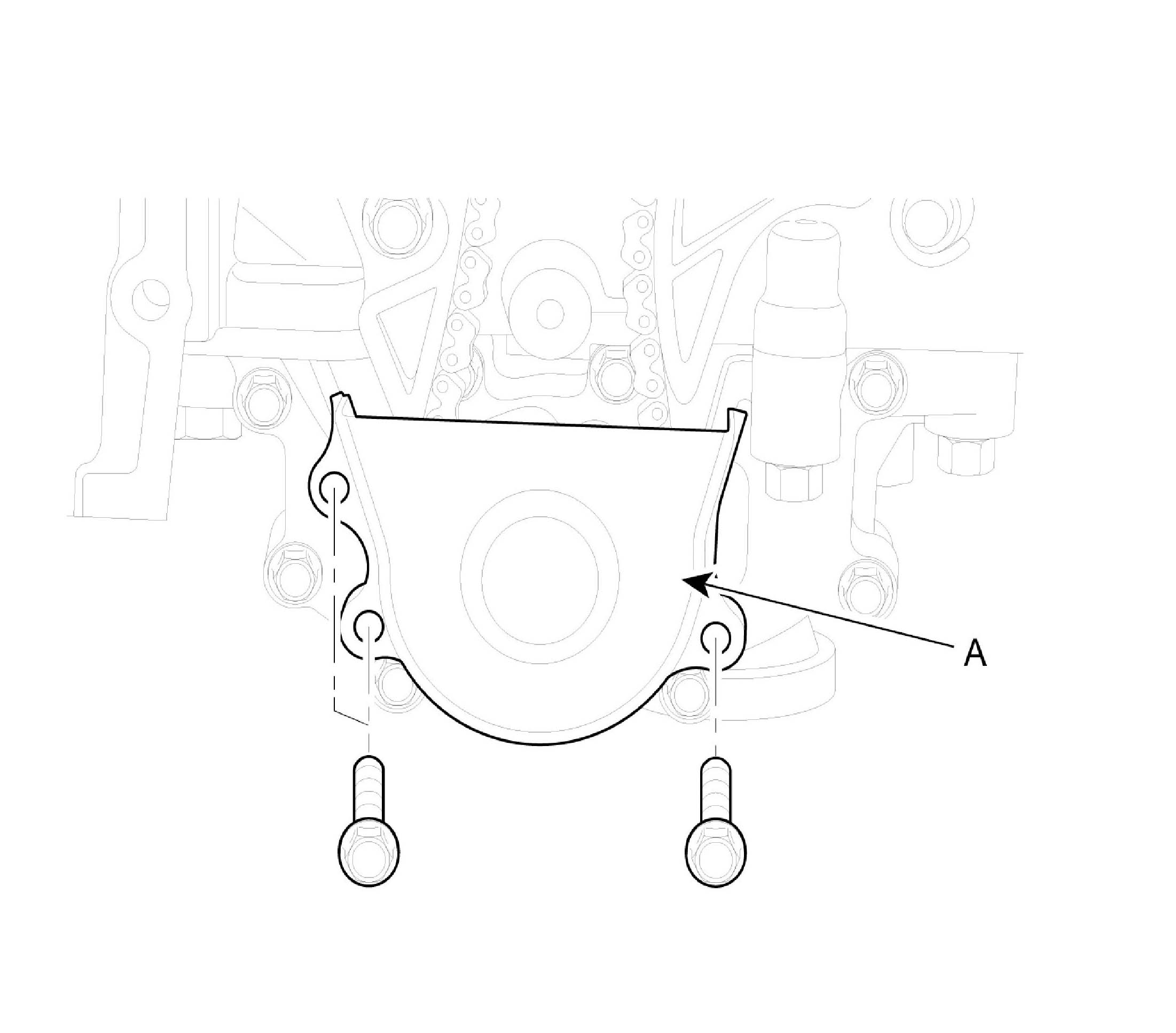 9. Remove oil pump chain cover (A).
