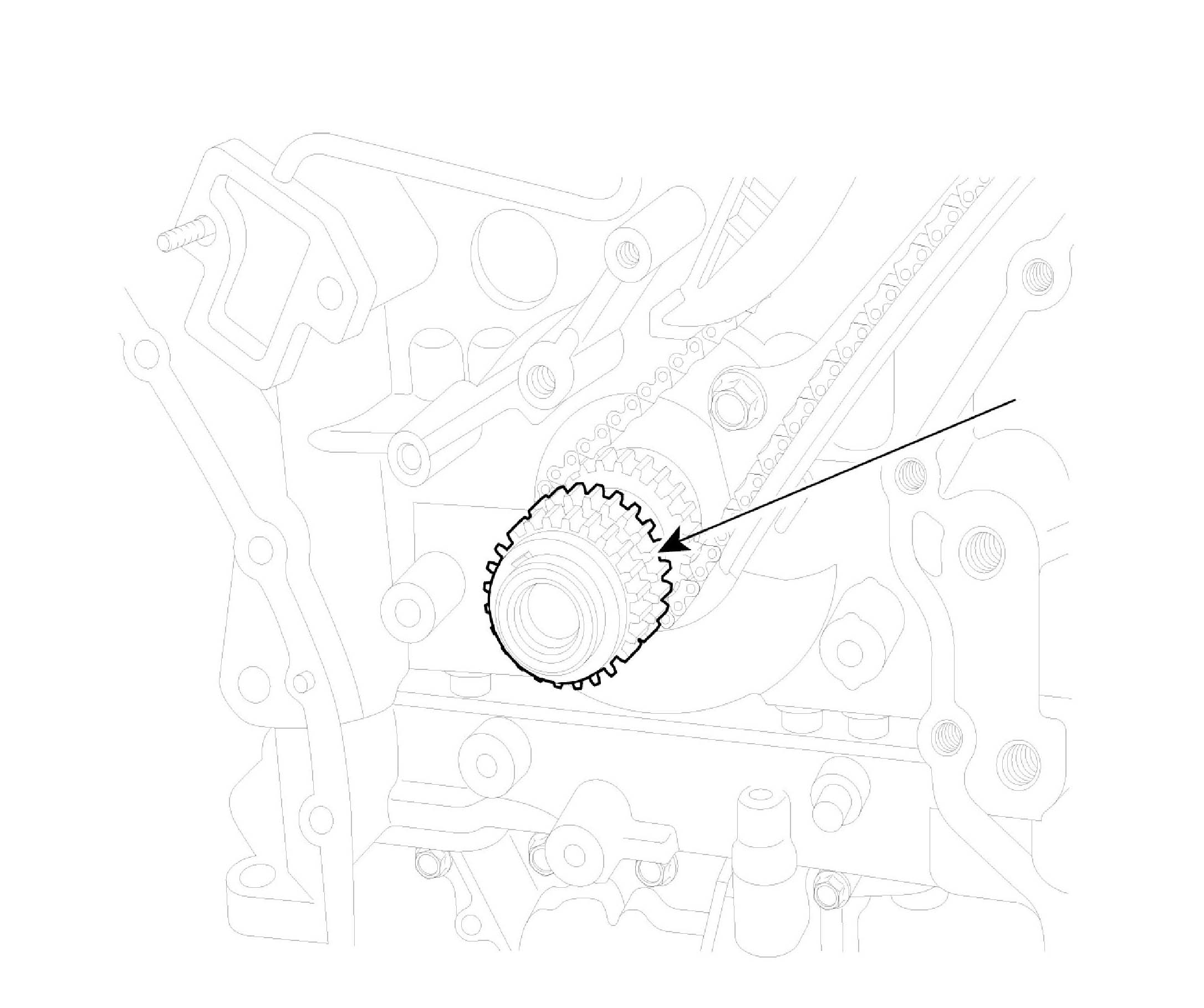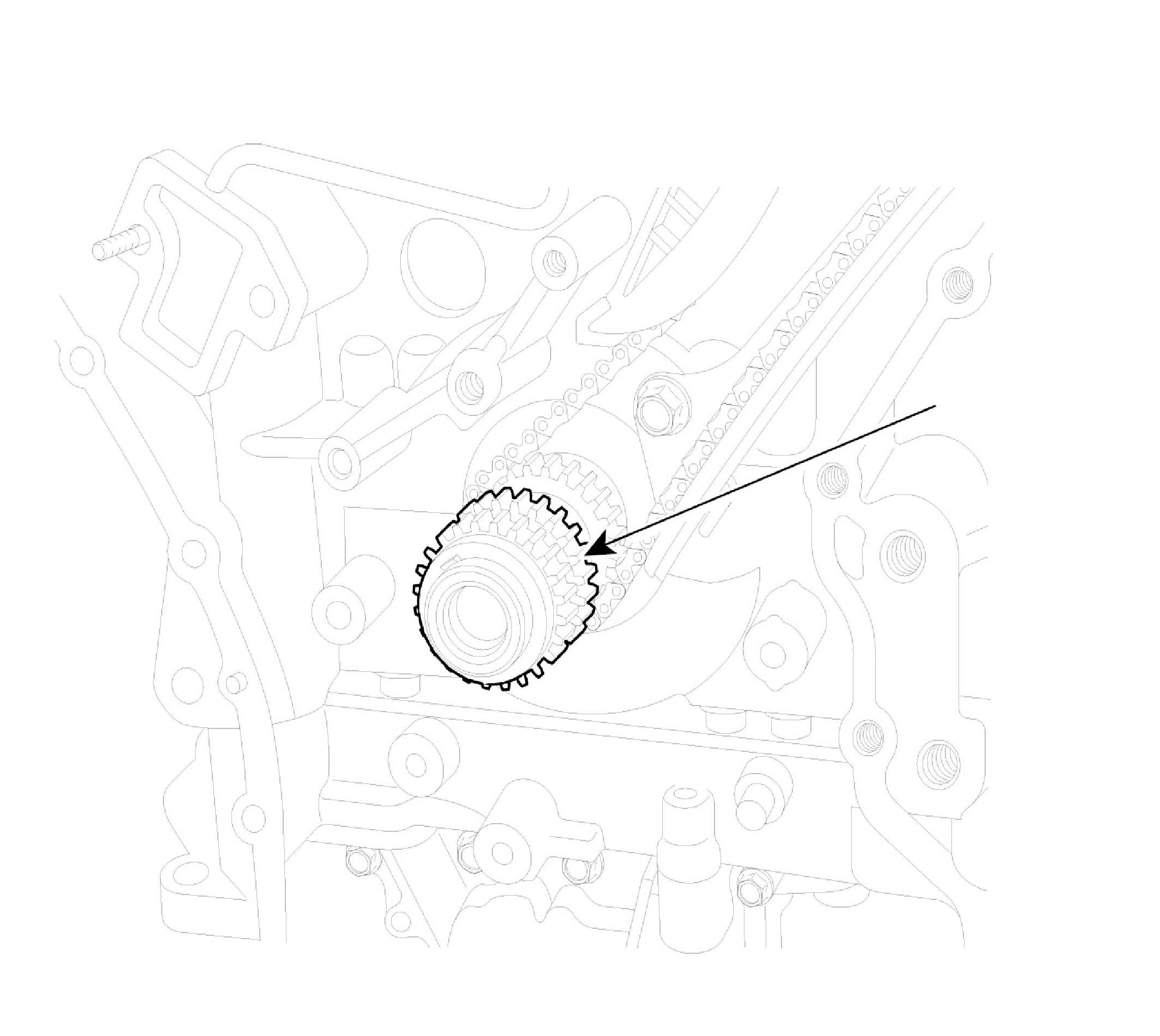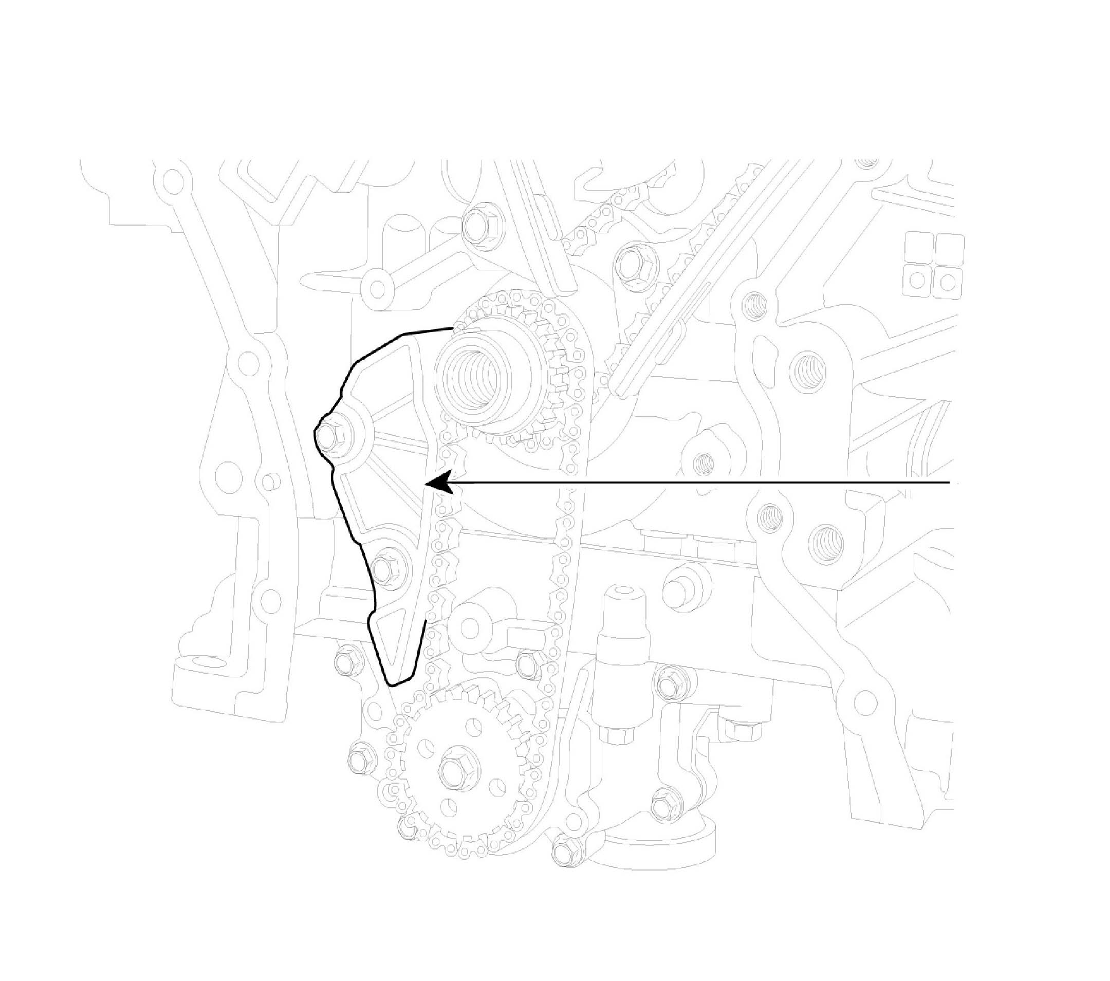 11. Remove oil pump chain guide (A).