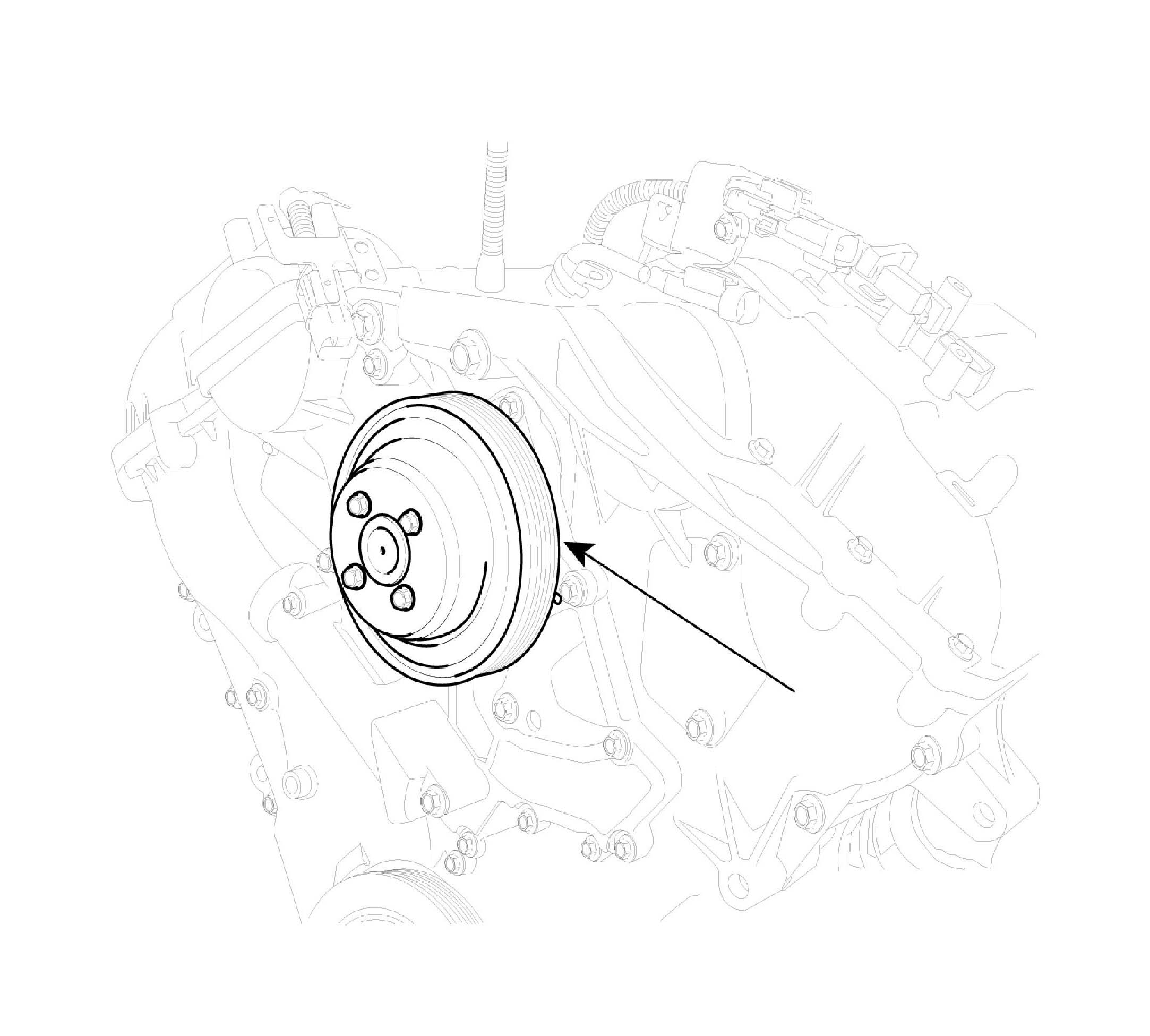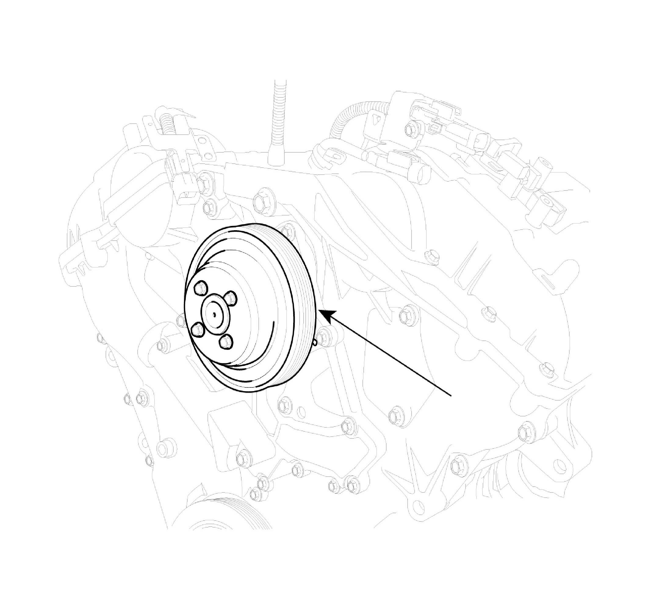 7. Remove water pump pulley (A).