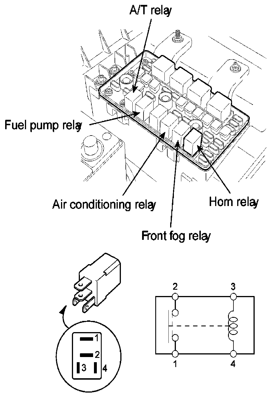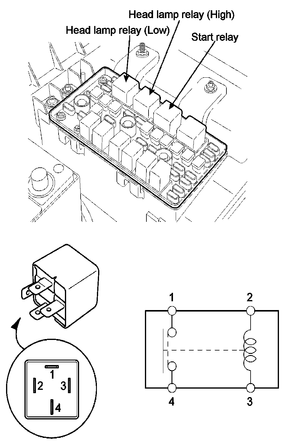 1. There should be continuity between the No.1 and No.4 terminals when power and ground are connected to the No.2 and No.3 terminals.