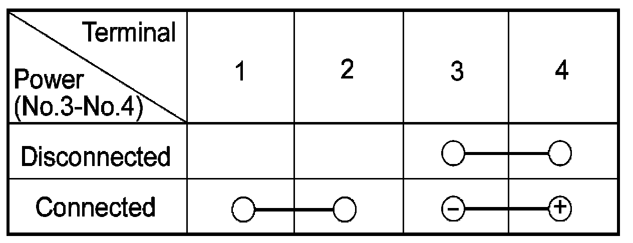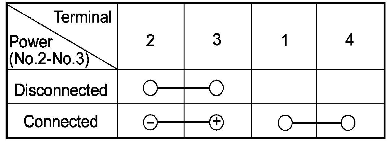 2. There should be continuity between the No.1 and No.4 terminals when power is disconnected.