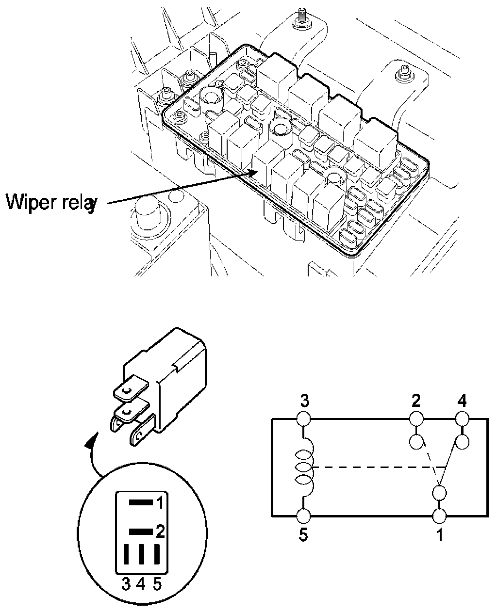 1. There should be continuity between the No.1 and No.2 terminals when power and ground are connected to the No.3 and No.5 terminals.
