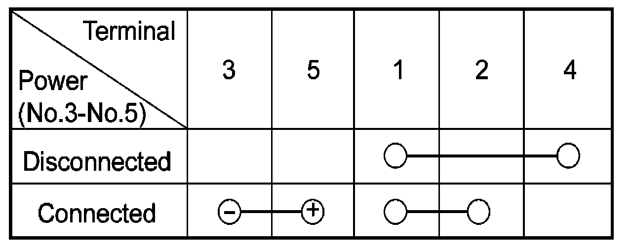 2. There should be continuity between the No.1 and No.5 terminals when power is disconnected.
