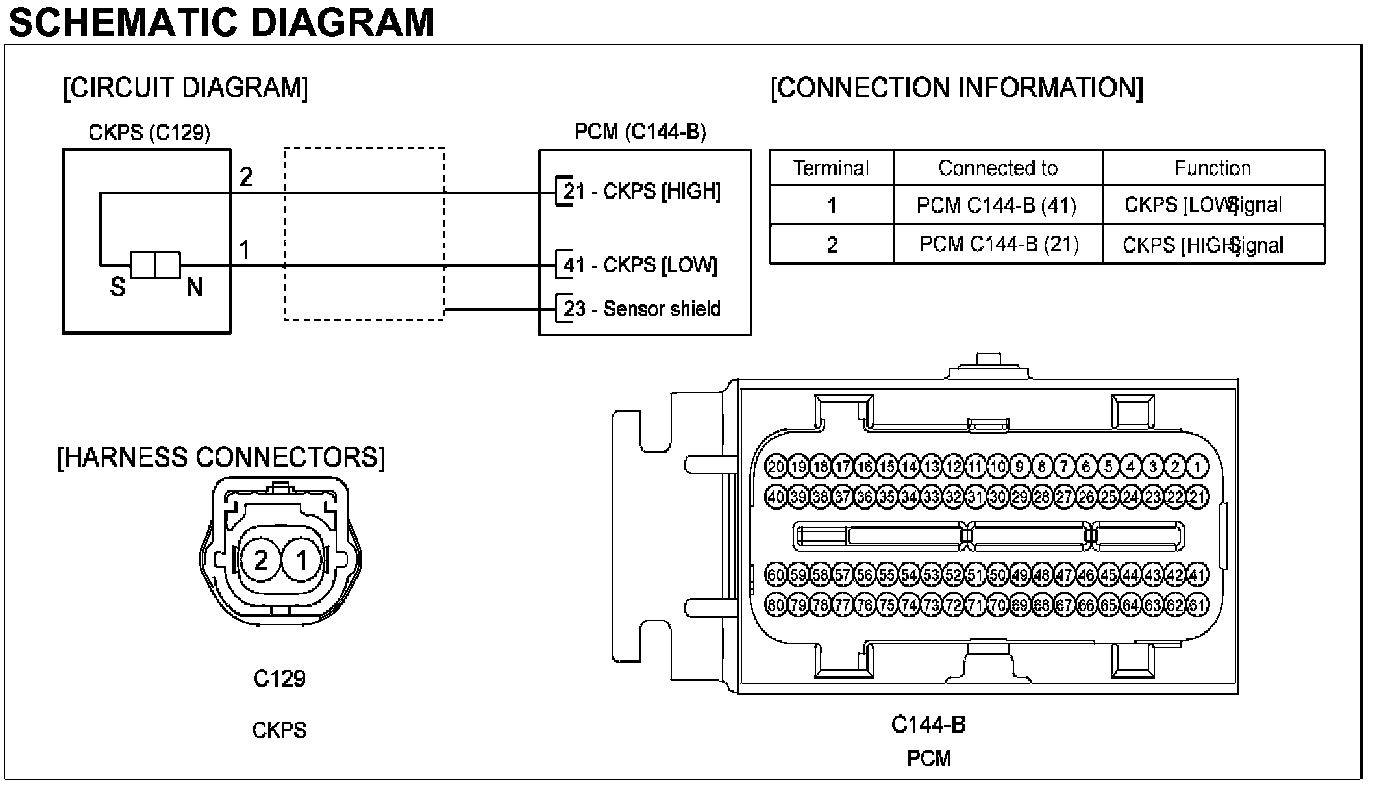 Crankshaft Position Sensor (CKPS) detects the crankshaft position and is one of the most important sensors of the engine control system. If there is no CKPS signal input, fuel is not supplied and the main relay does not operate. That is, vehicle can't run without CKPS signal. This sensor is installed on transaxle housing and generates alternating current by magnetic flux field which is made by the sensor and the target wheel when engine runs. The magnetic flux increases when the protrusion of the target wheel is getting near to the sensor and does not change in the most close position. When the protrusion becomes estranged from the sensor, magnetic flux disappears and alternating current is generated. The target wheel consists of 58 slots and 2 missing slots on 360 CA (Crank Angle).