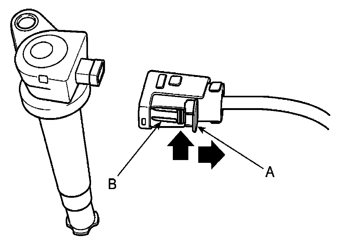 NOTE: When removing the ignition coil connector, pull the lock pin (A) and push the clip (B).