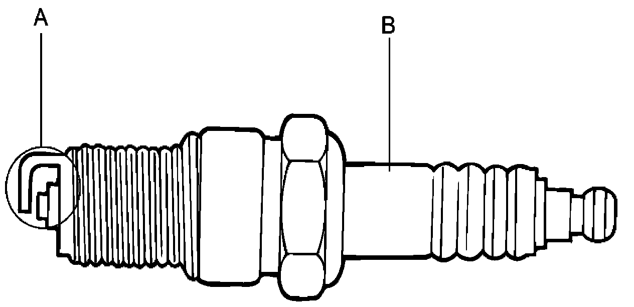 4. Inspect the electrodes (A) and ceramic insulator (B).