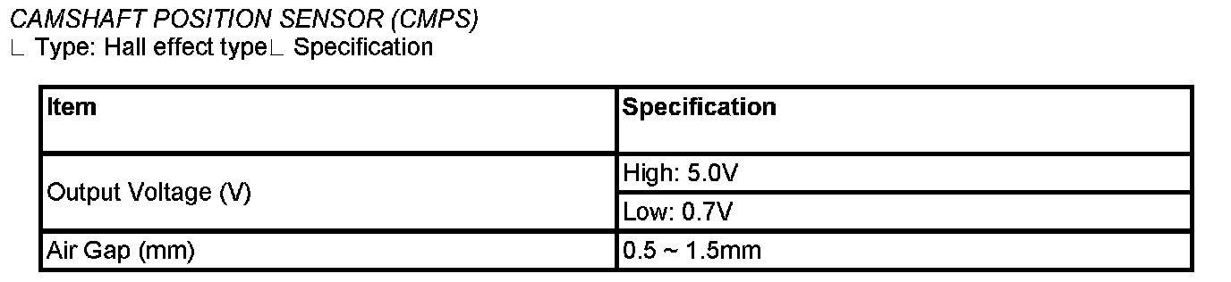 Camshaft Position Sensor (CMPS) - Specification: