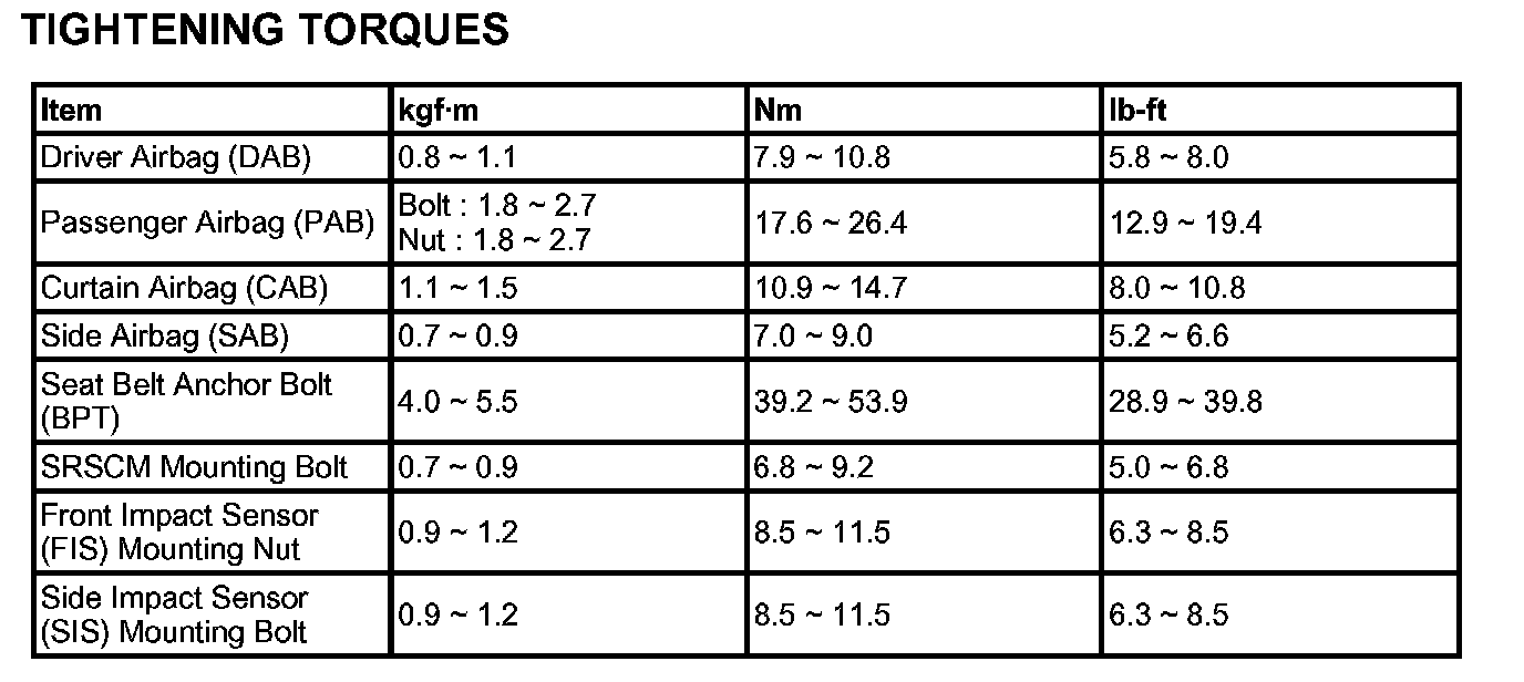 Tightening Torques: