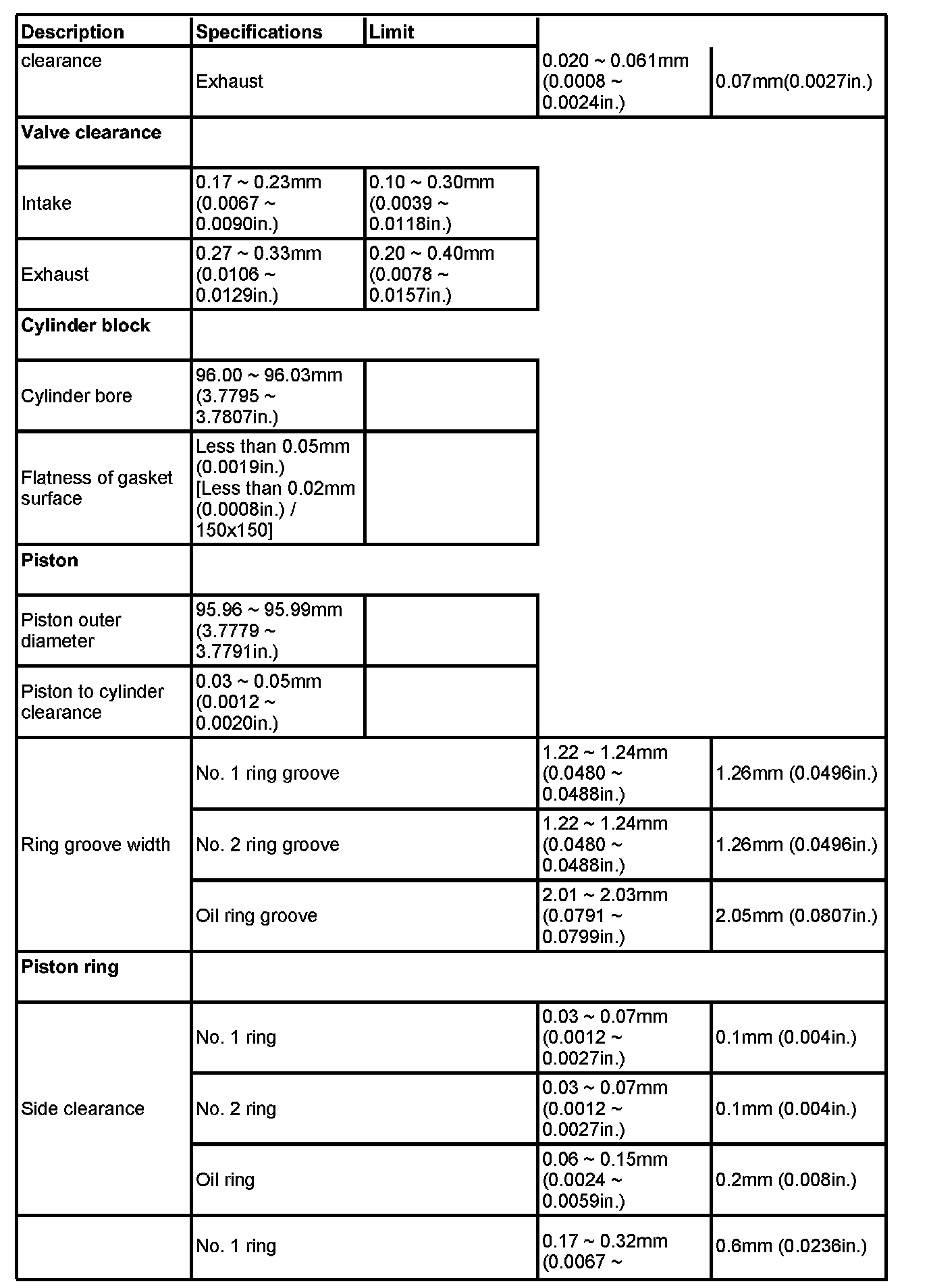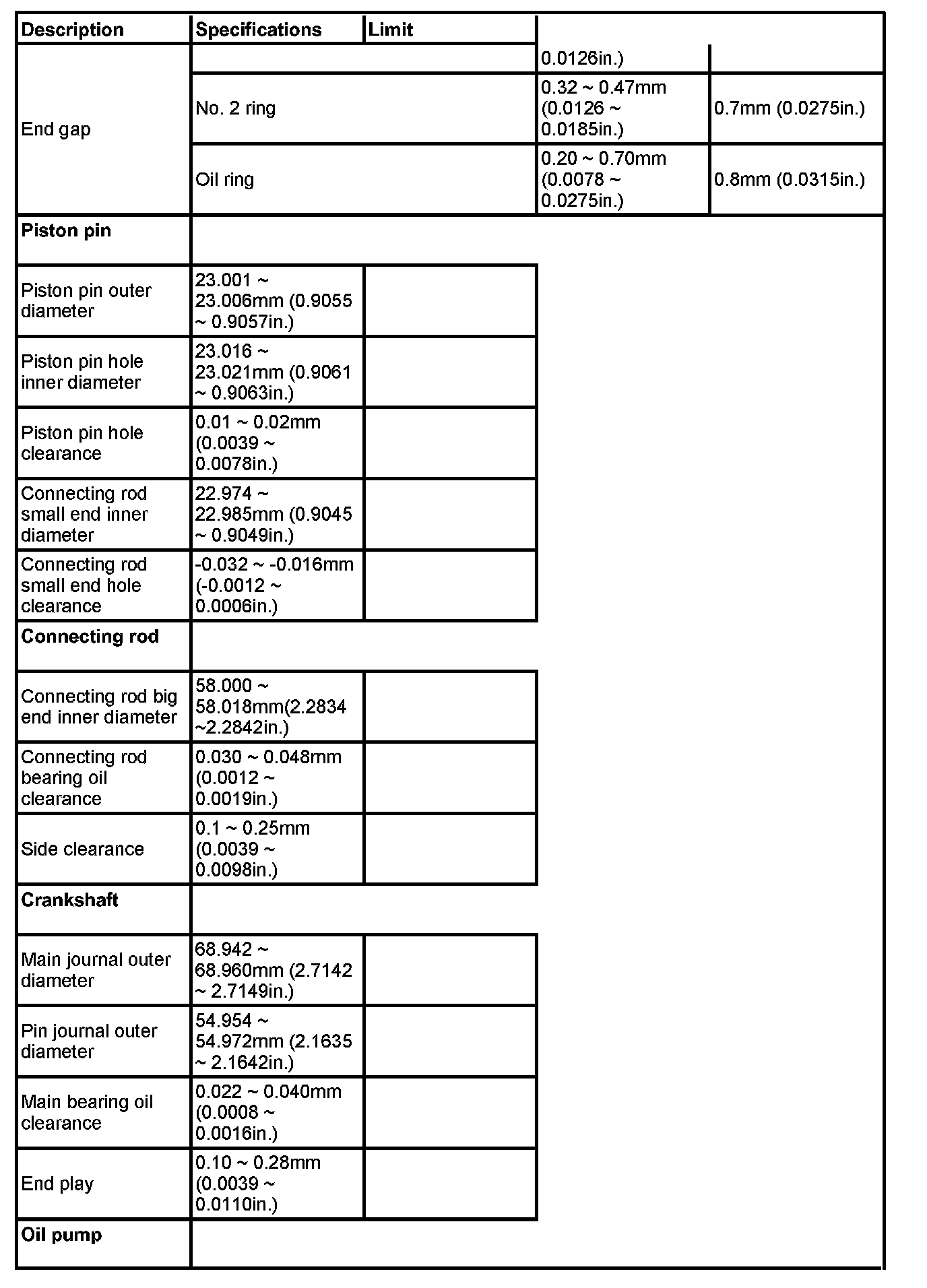 Main bearing cap bolt tightening torque1 - 8 49.00 Nm (5.0 kgf-m, 36.16 ft. lbs.) + 90°