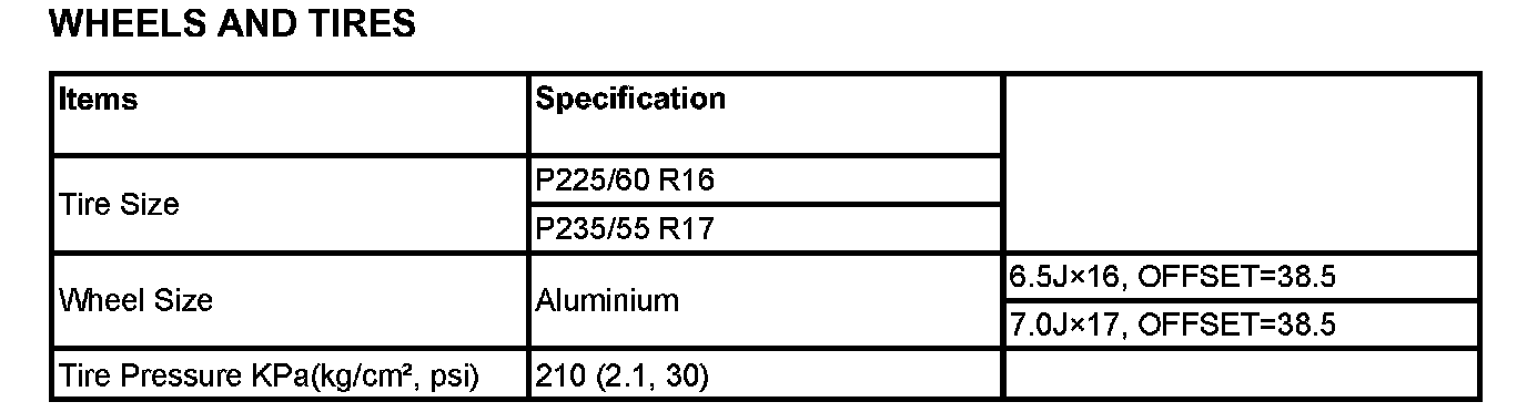 WHEELS AND TIRES: