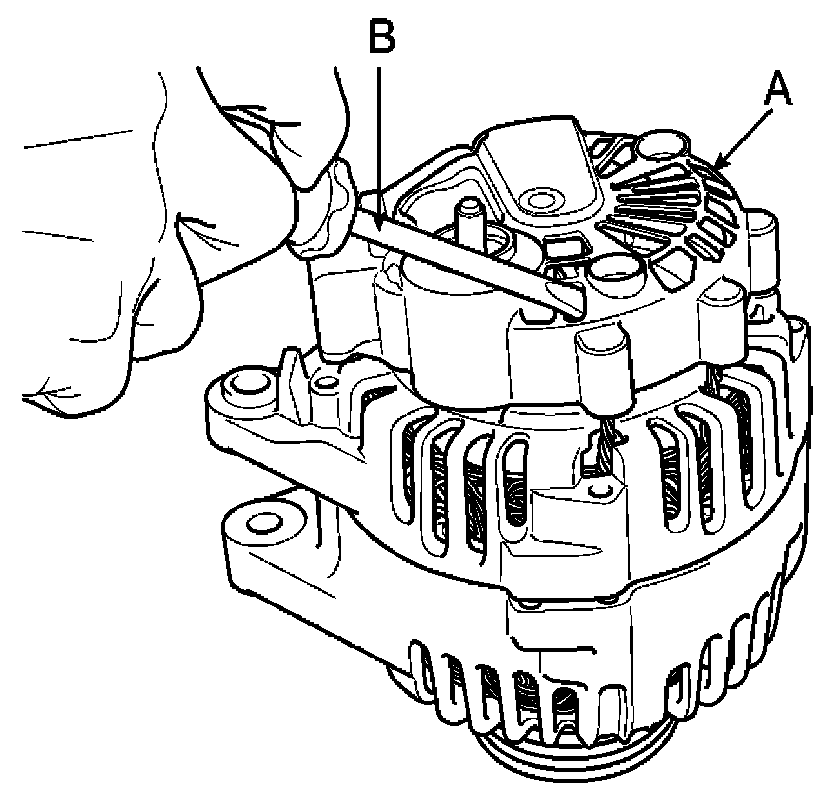 DISASSEMBLY1. Remove the alternator cover (A) using a screw driver (B).