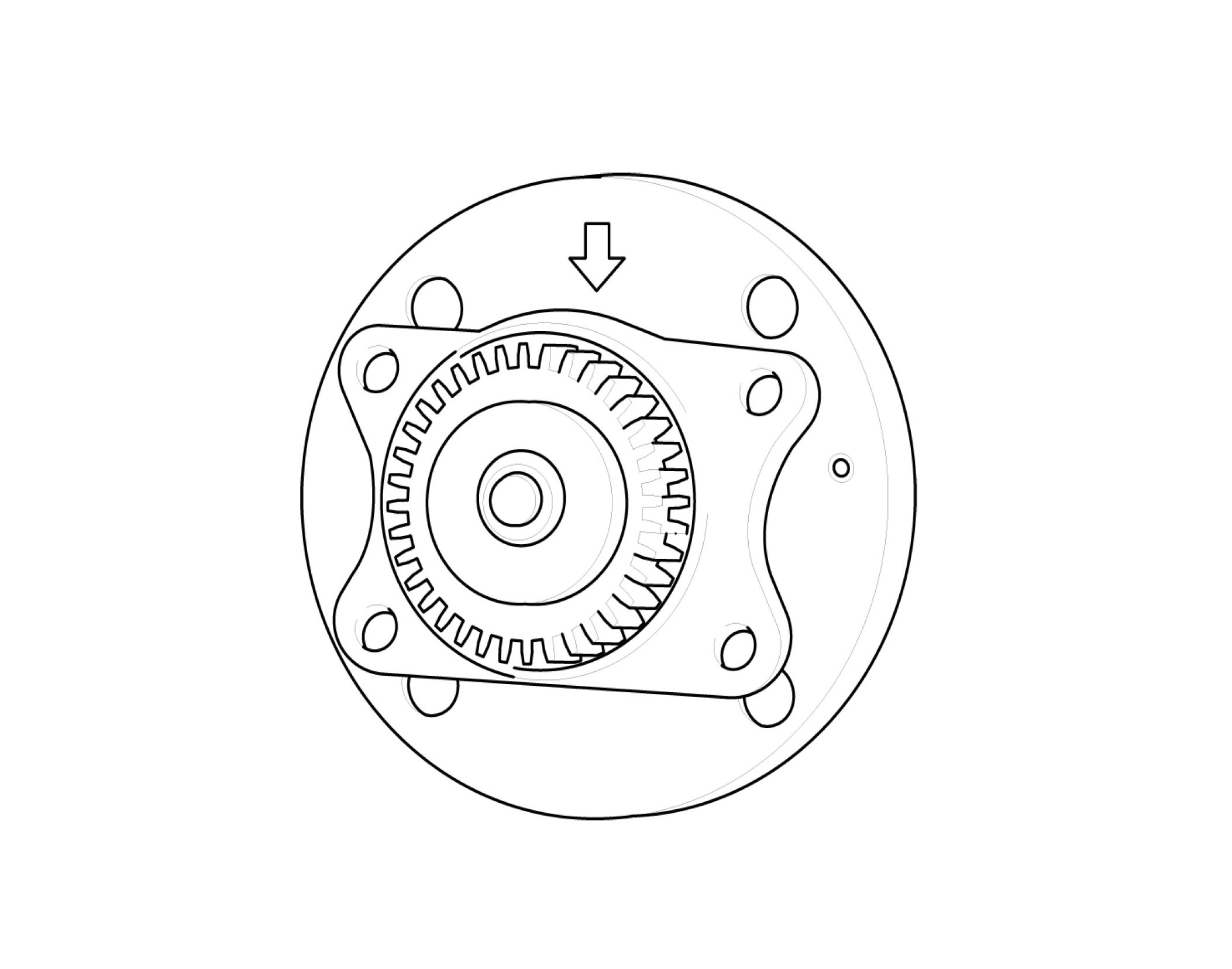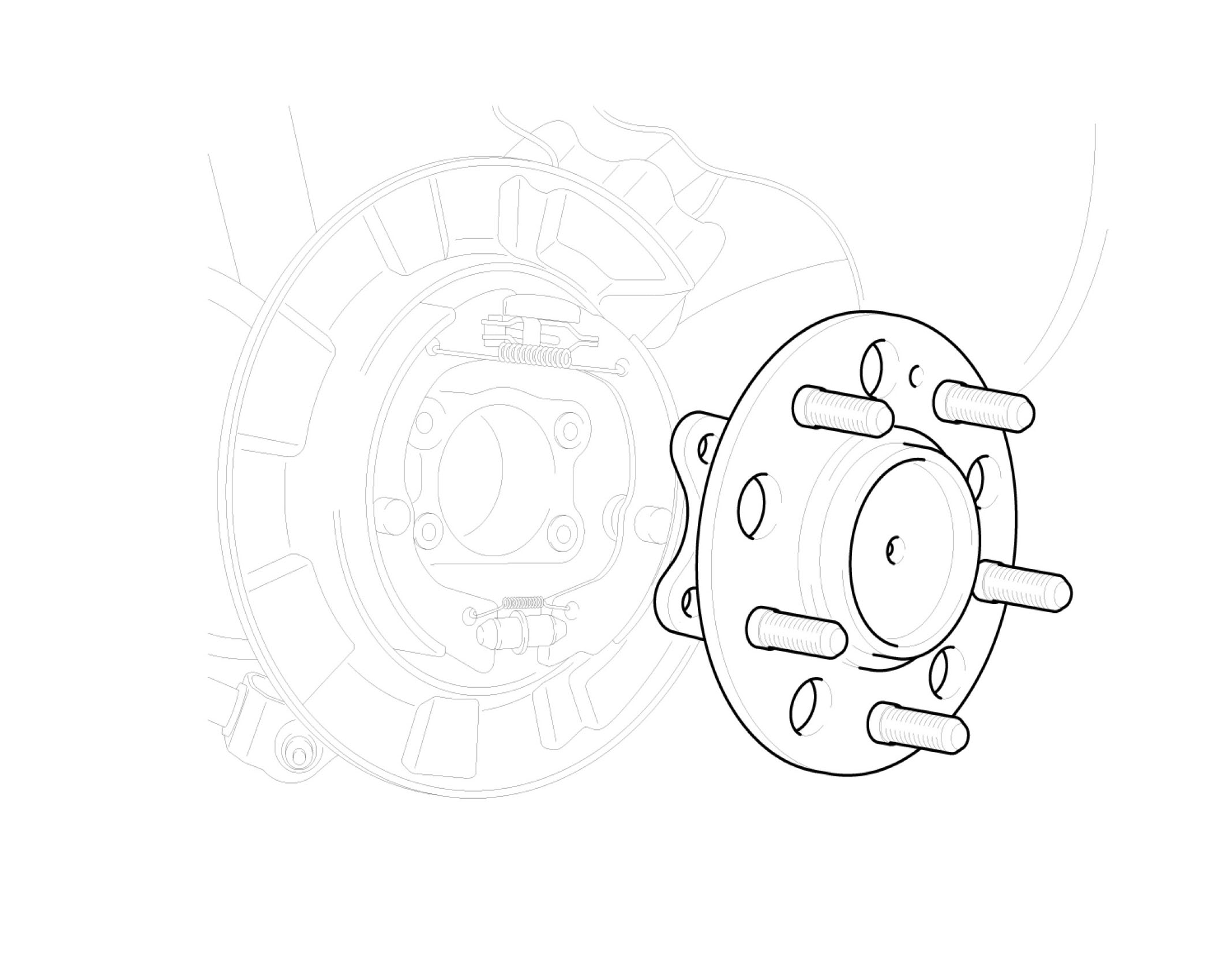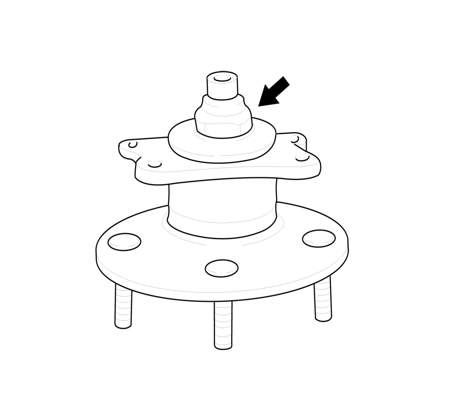 6. Fix the hub and bearing assembly to the brake backing plate so that the rounded area of the bearing outer race is placed facing upward.