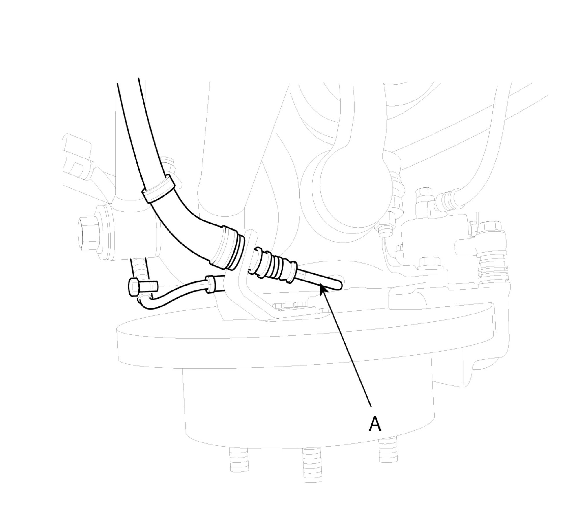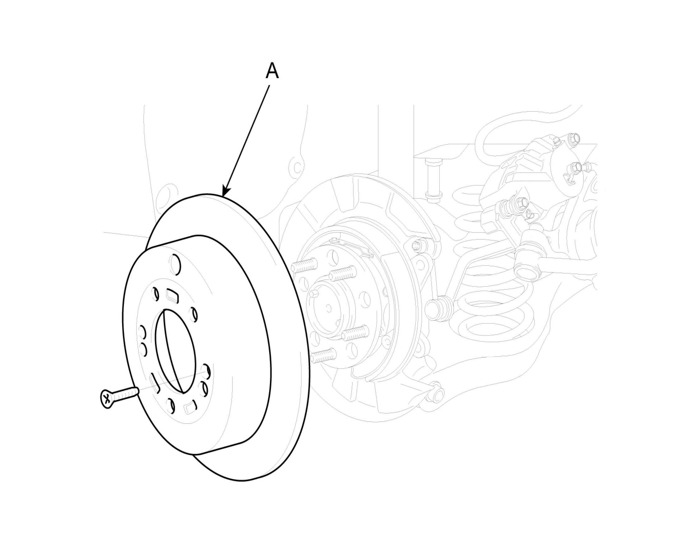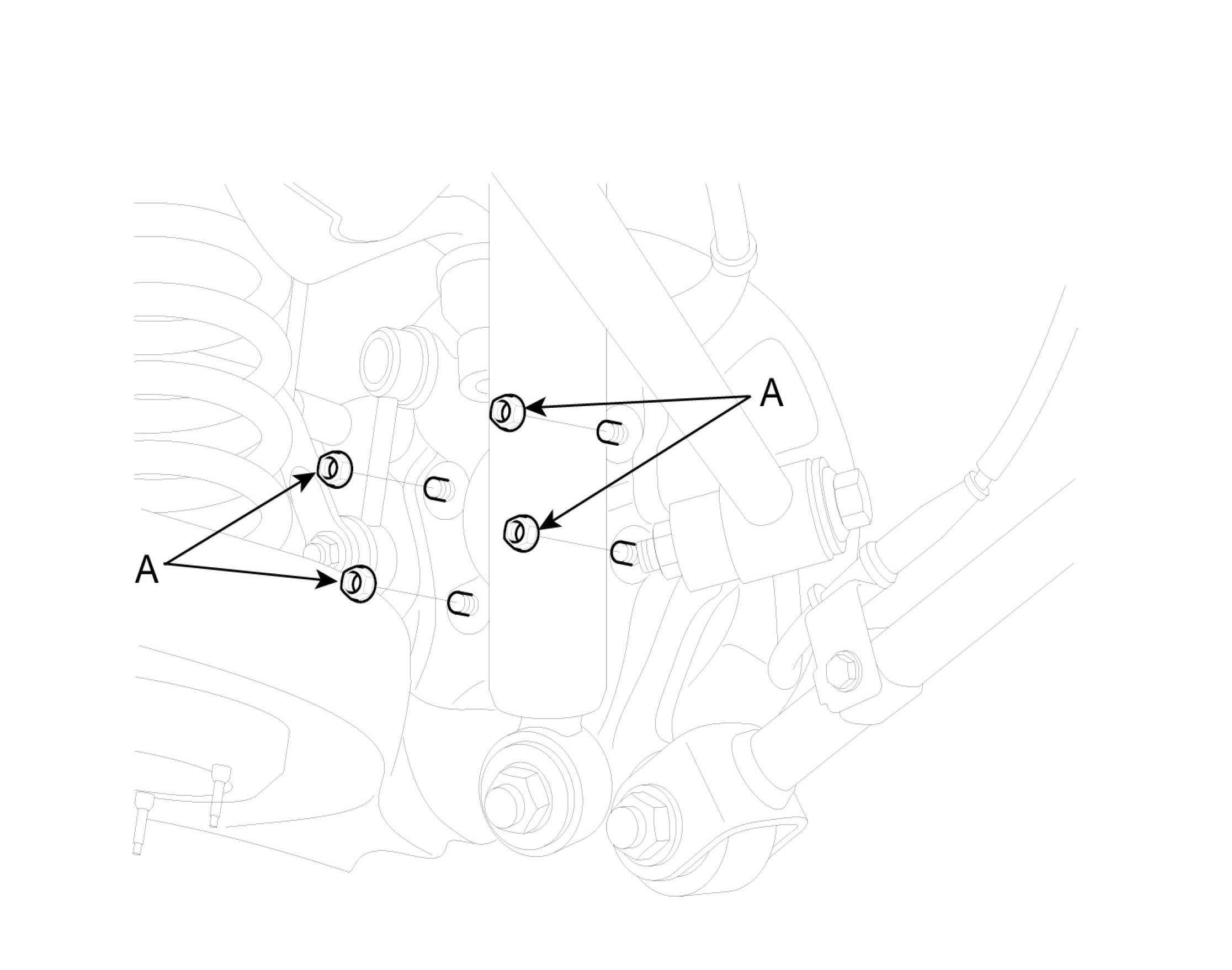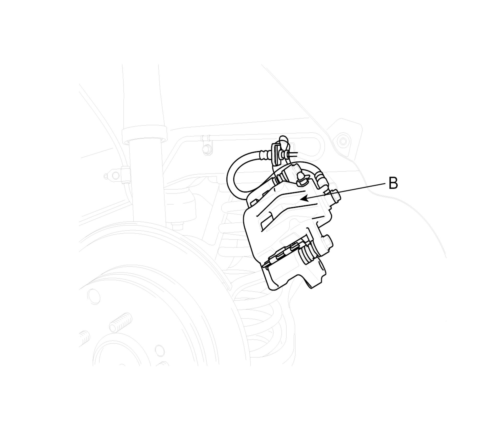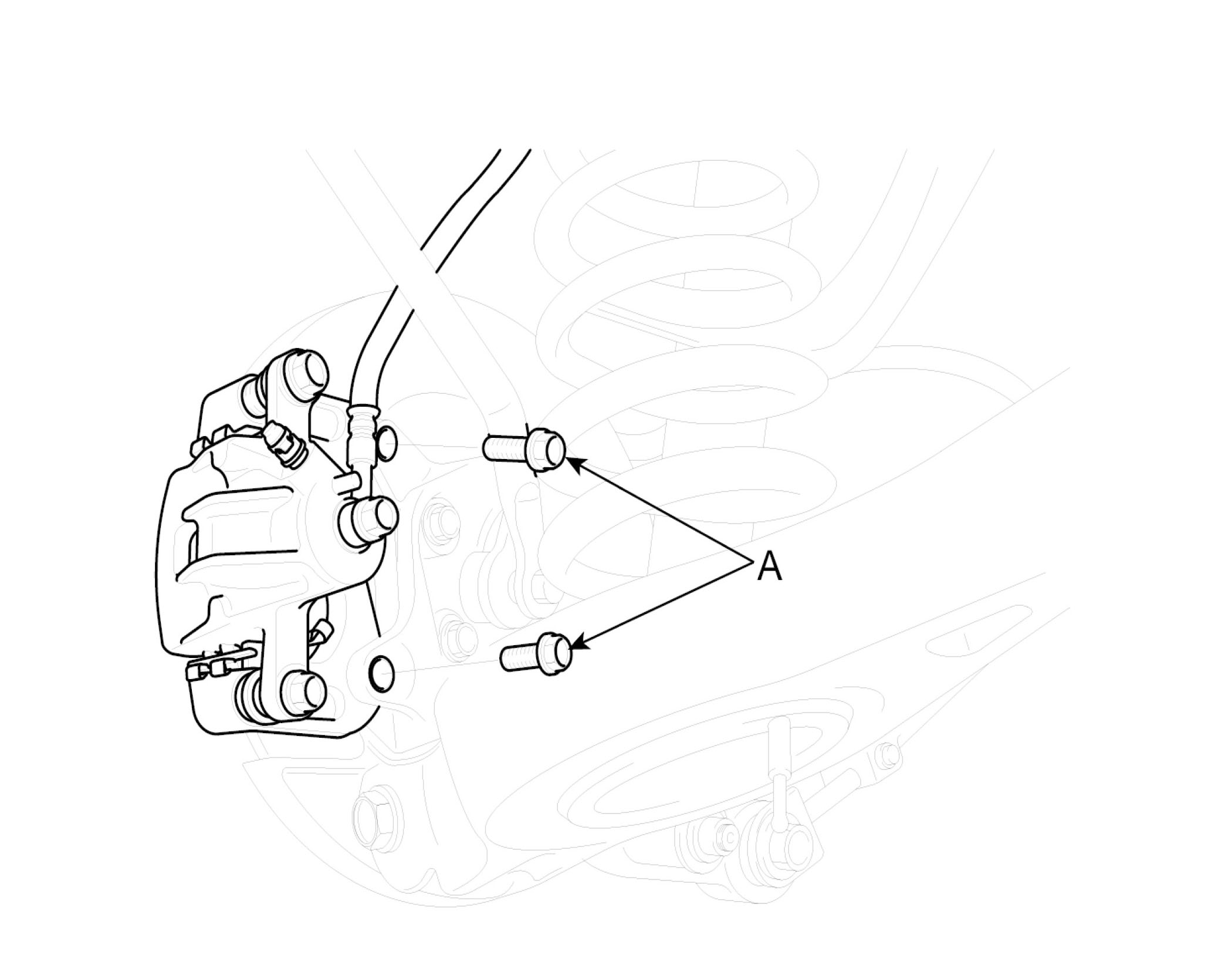 4. After loosening the bolts (A), remove the caliper assembly (B) from the carrier assembly and suspend it with wire.