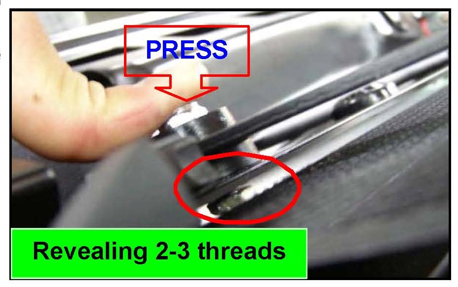 11. Press the outer nut of the motor arm stud as shown in the photo. If the revealing gap shows less than 2-3 threads, use the thin wrench to loosen the inner nut, until revealing 2-3 thread space. In the meantime, you still have to press the outer nut as photo shows.