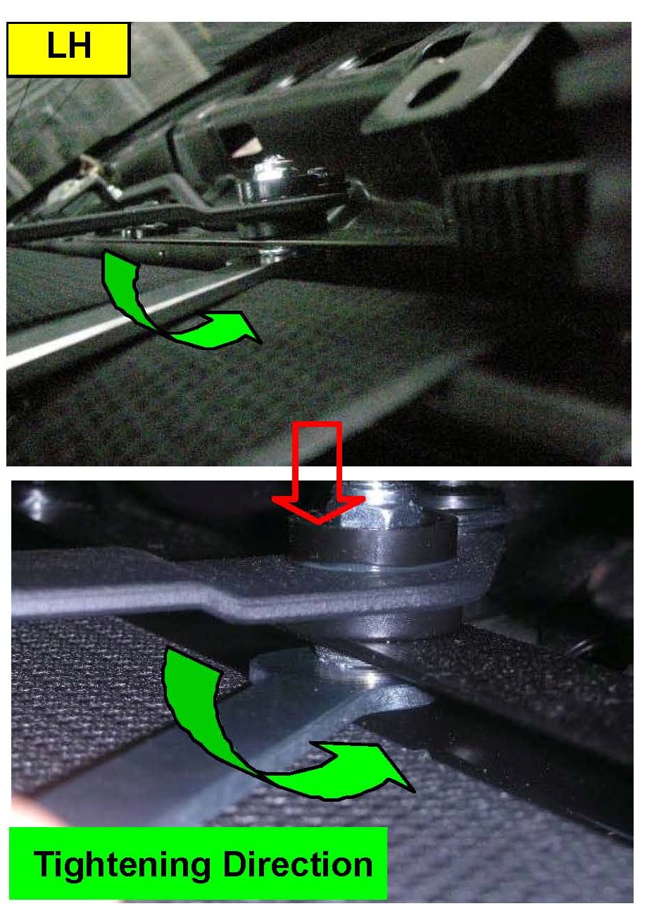 13. Tighten the inner nut on the stud bolt and operate the sunshade around 5 times.