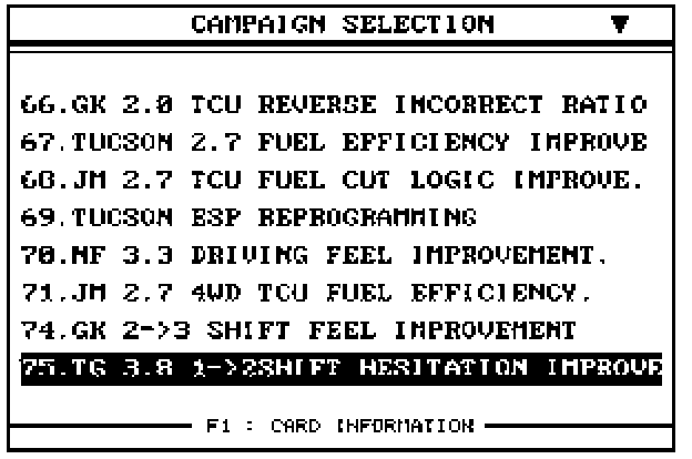 3. Select option "75. TG 3.8 1->2 SHIFT HESITATION IMPROVE" and press ENTER.