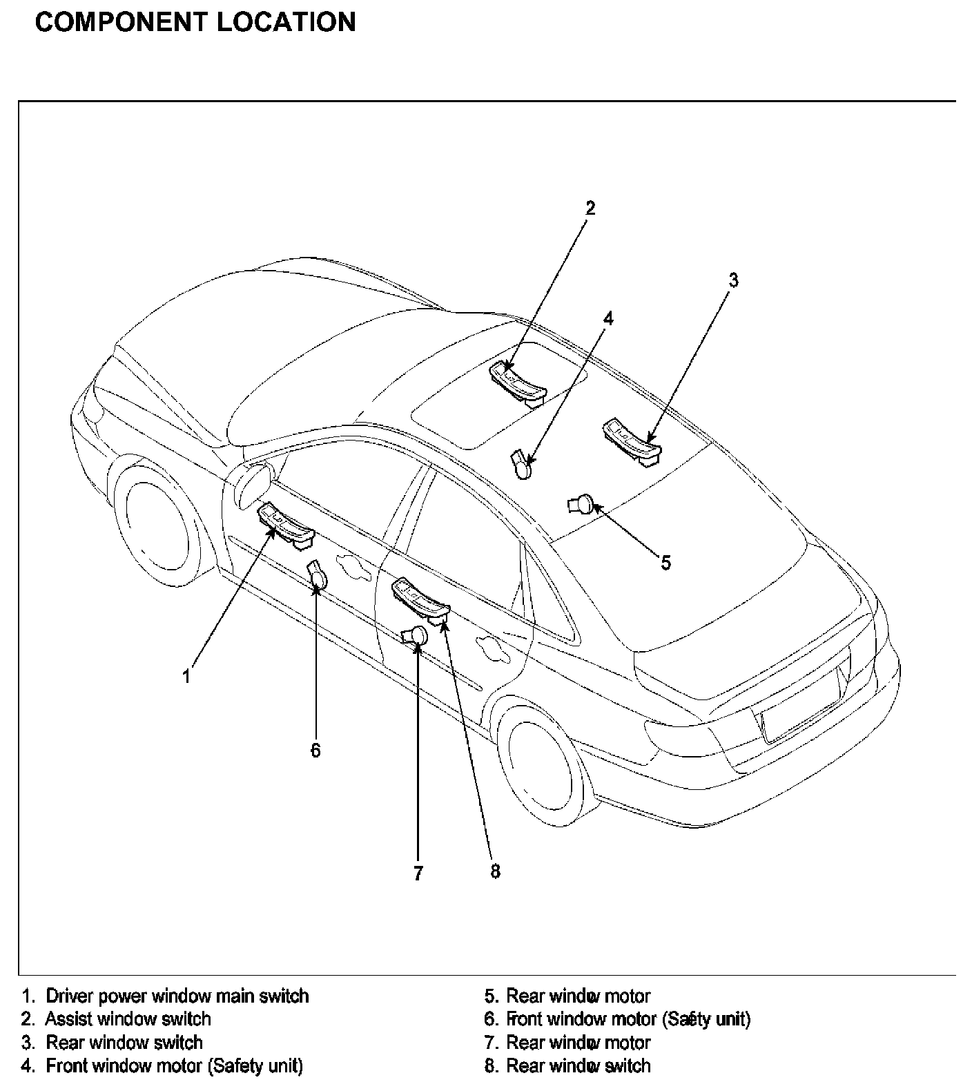 Power Windows Component Location: