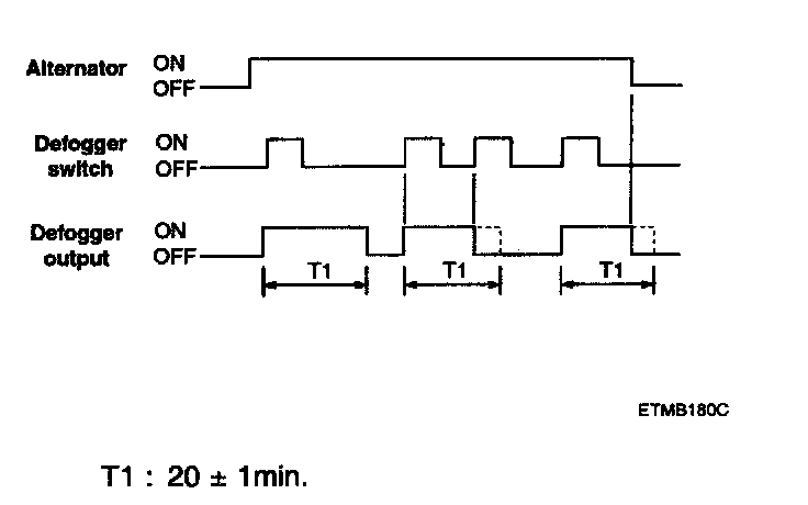 1. After ALT "L" ON, if the defogger is switched ON, the defogger output is ON for 20 minutes duration.