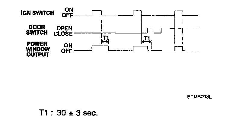 2) When the ignition is switched OFF, the power window output is maintained ON for 30 seconds and then turned OFF