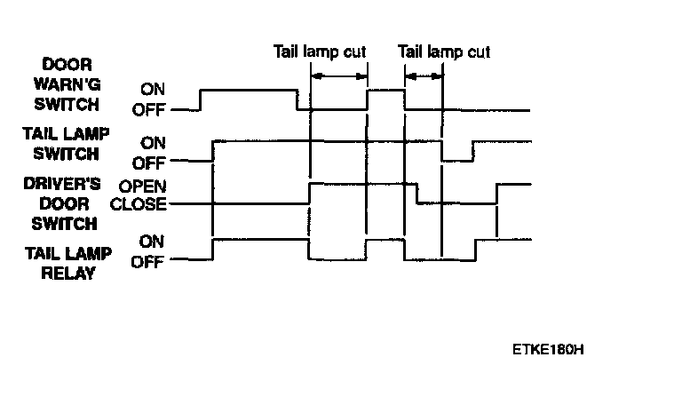 2) With the ignition switched ON, if the driver's door is opened and the ignition is switched OFF, the tail lamp should be automatically OFF.