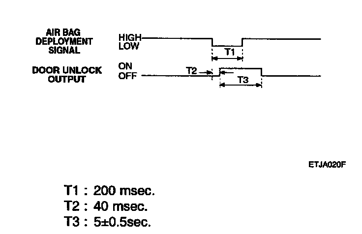 1) With the ignition turned ON, if the air bag is deployed, a crash signal is received and send an UNLOCK output to all doors UNLOCK.