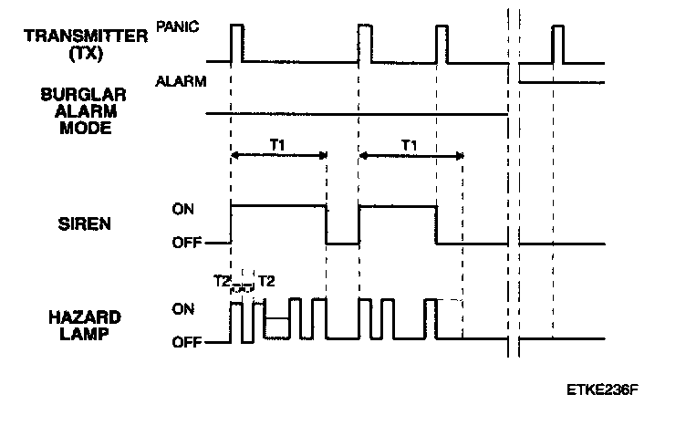 1) If transmitter's panic signal is received, the panic alarm output is ON for 30 seconds