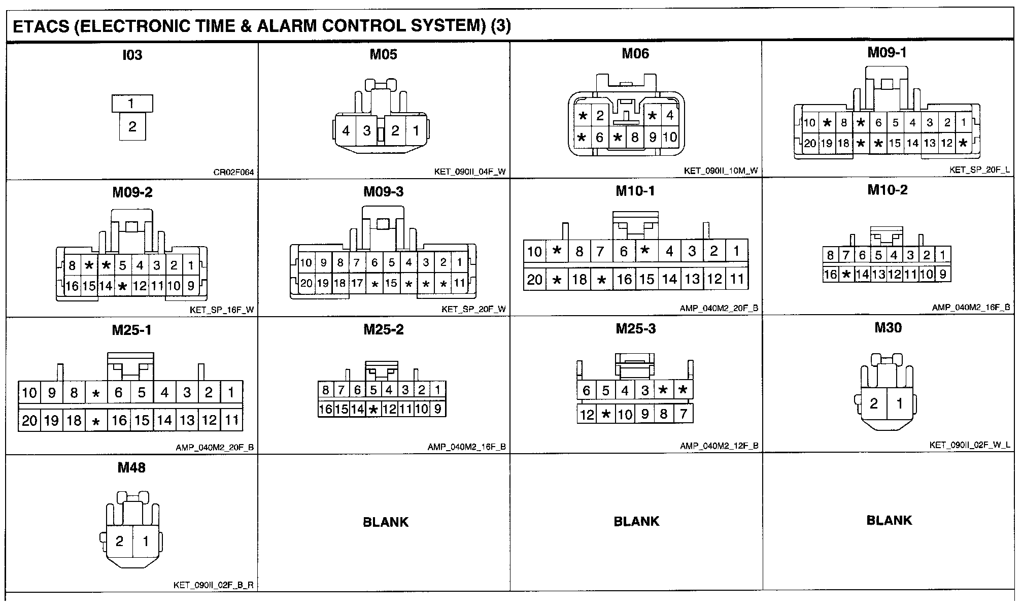 ETACS (Electronic Time & Alarm Control System) Connector Pin Outs: