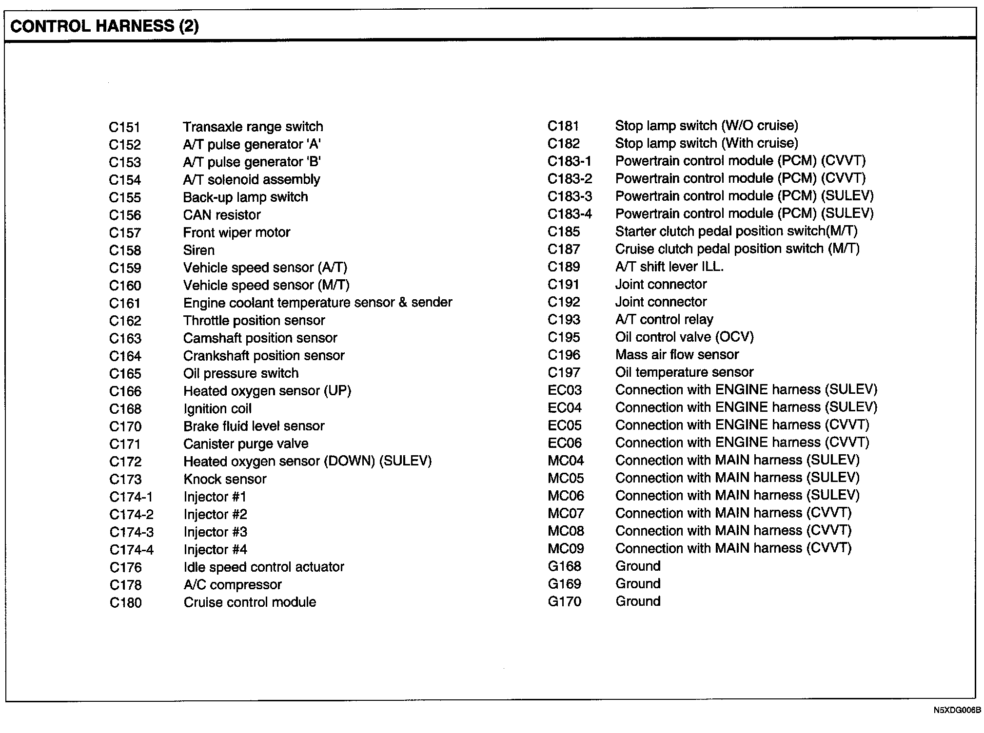 Control Harness Index: