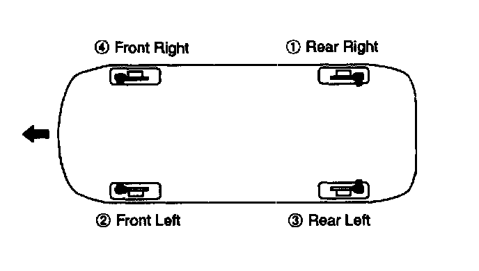 4. Repeat the procedure for each wheel in the sequence shown until air bubbles no longer appear in the fluid.