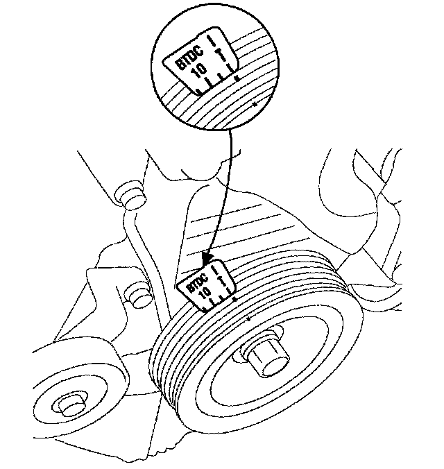 4. Turn the crankshaft pulley, and align its groove with timing mark "T" of the timing belt cover.