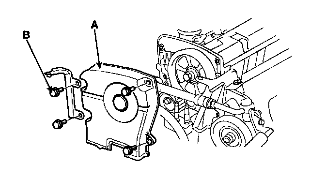 8. Install the timing belt upper cover (A) with 4 bolts (B).