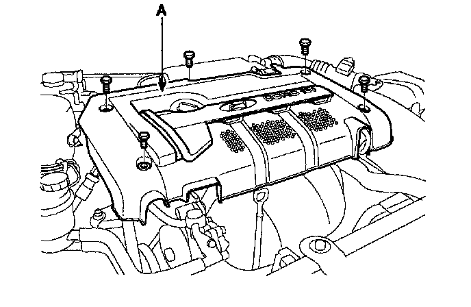 10. Install engine cover (A) with 5 bolts.