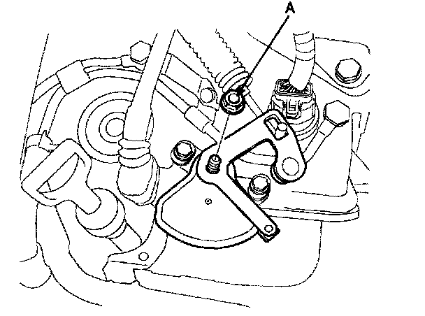 8. Remove the transaxle range switch manual lever mounting nut (A).