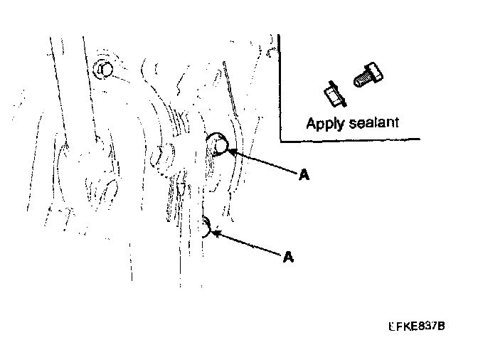 2. Apply sealant to the bolt mounting holes(A), and tighten the accelerator pedal bracket.