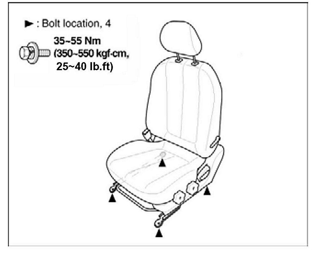 Tightening torque for seat mounting bolts:
