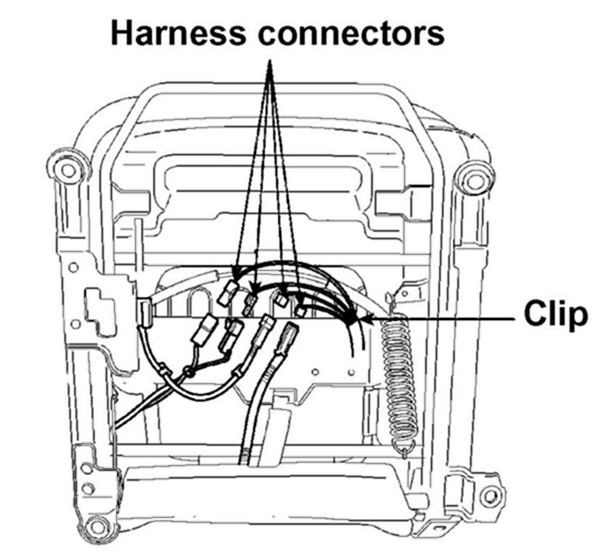 14. Reinstall the seat and connect all connectors and wire tie clips.
