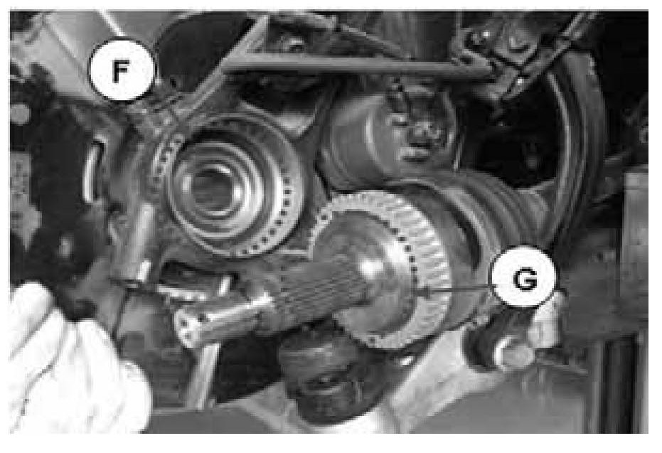 6. Remove any foreign material from the contact surface between the front hub (F) and the driveshaft (C) and then wipe it gently with a clean cloth.