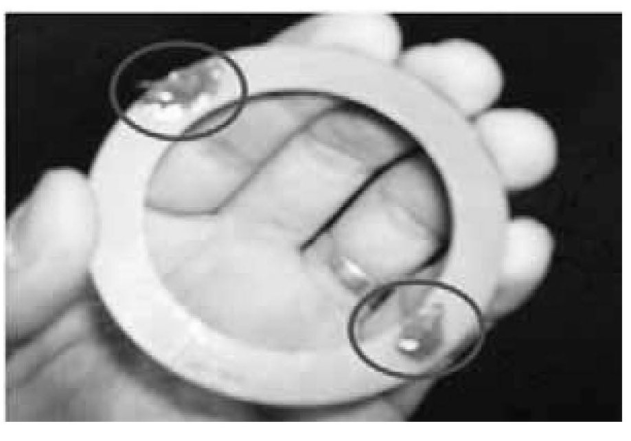 7. Clean the isolation washer and apply grease to 2 points on one surface of the washer as shown in the photo.