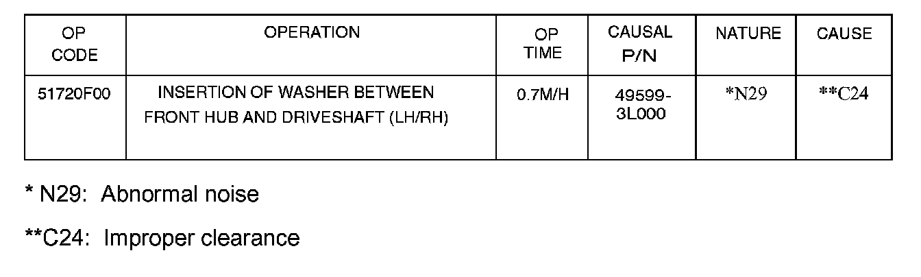 This bulletin provides a procedure to insert a washer between the front hub and driveshaft.