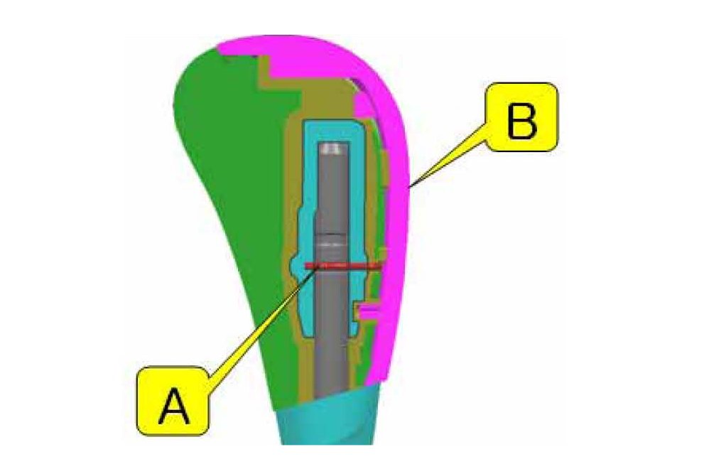 It is not necessary to remove the decorative plastic cover (B) to access the snap ring (A). Removing this cover may damage to the shift lever.