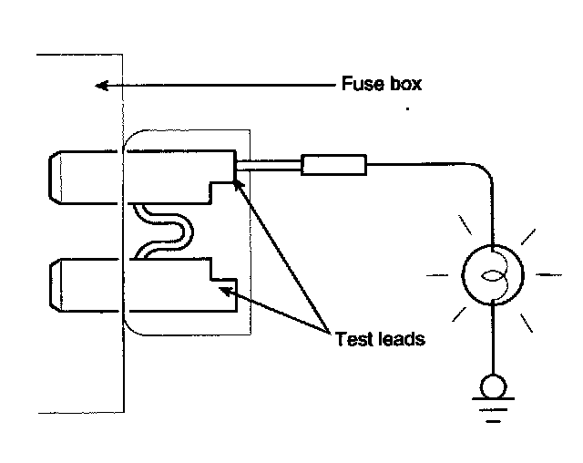 A blade type fuse test taps provided to allow checking the fuse itself without removing it from the fuse box. The fuse is good if the test lamp lights up when one lead is connected to the test taps (one at a time) and the other lead is grounded. (Turn the ignition switch so that the fuse circuit becomes operative)