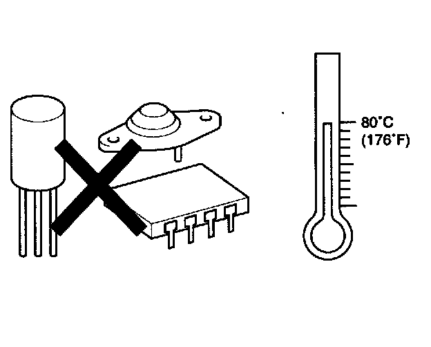 6. The electronic parts used in the computer, relays, etc. are readily damaged by heat. If there is a need for service operations that may cause the temperature to exceed 80 C (176 F), remove the electronic parts before hand.